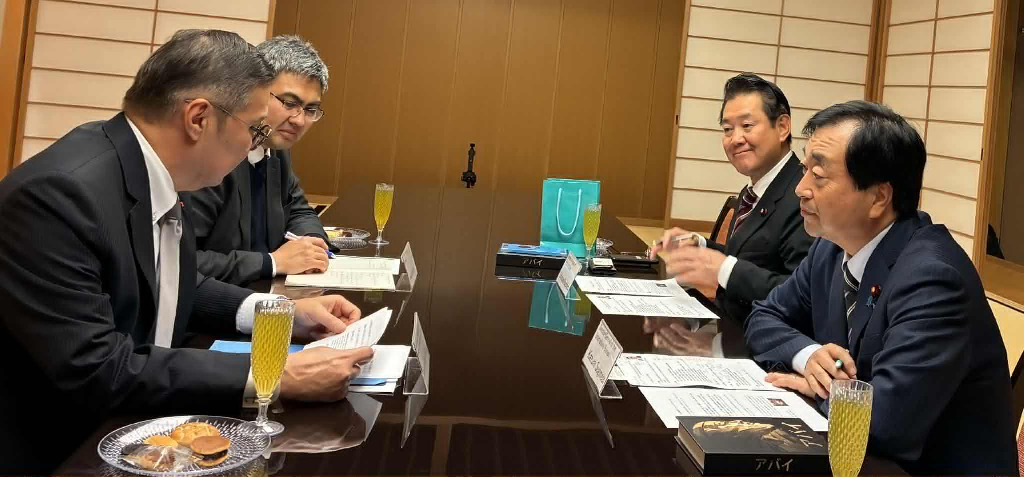 カザフスタン大使館のバウダルベック・コジャタエフ大使、杉本和巳国際局長、市村浩一郎衆議院議員、伊東信久衆議院議員による面談が、議員会館にて行われました。