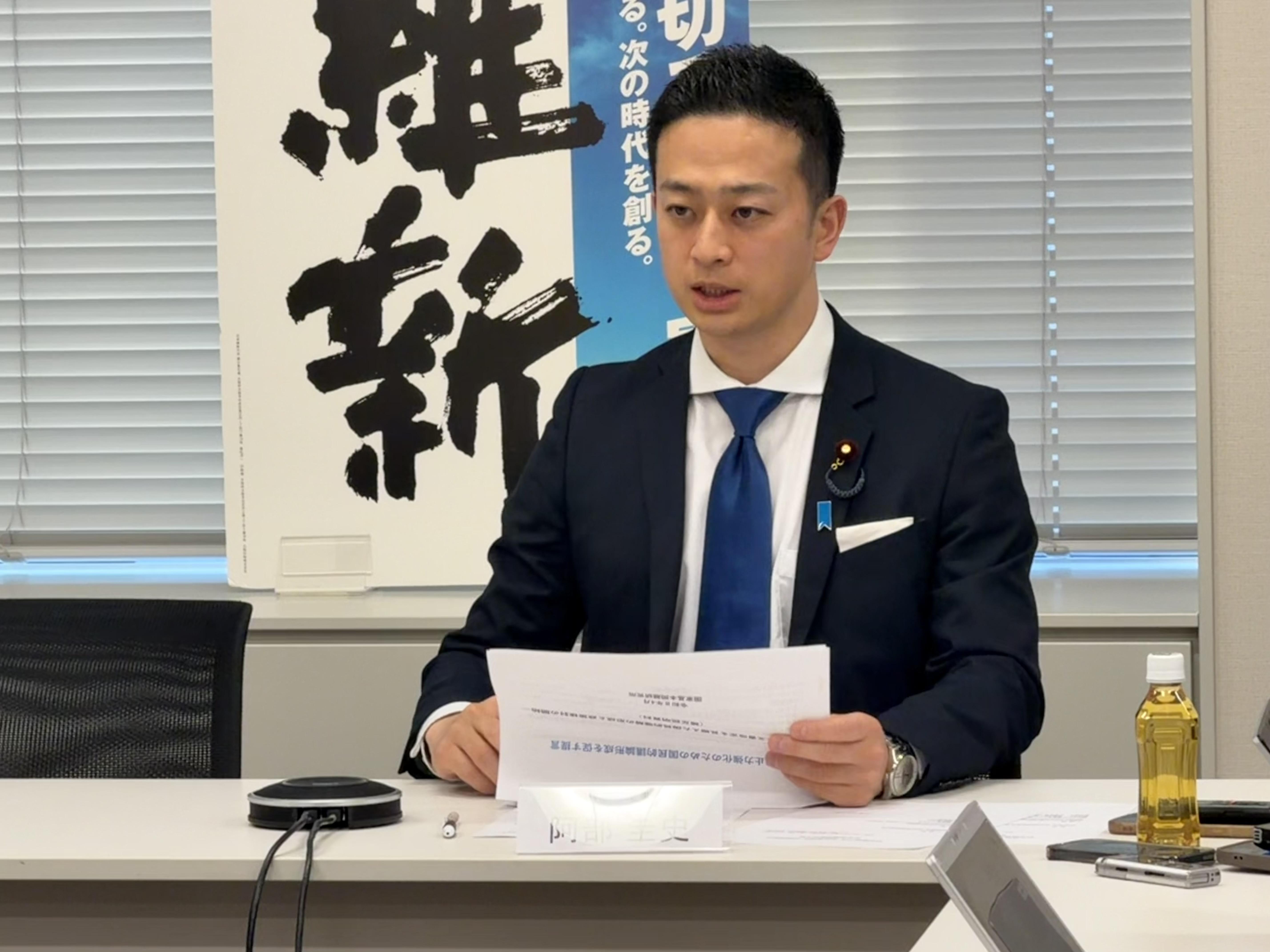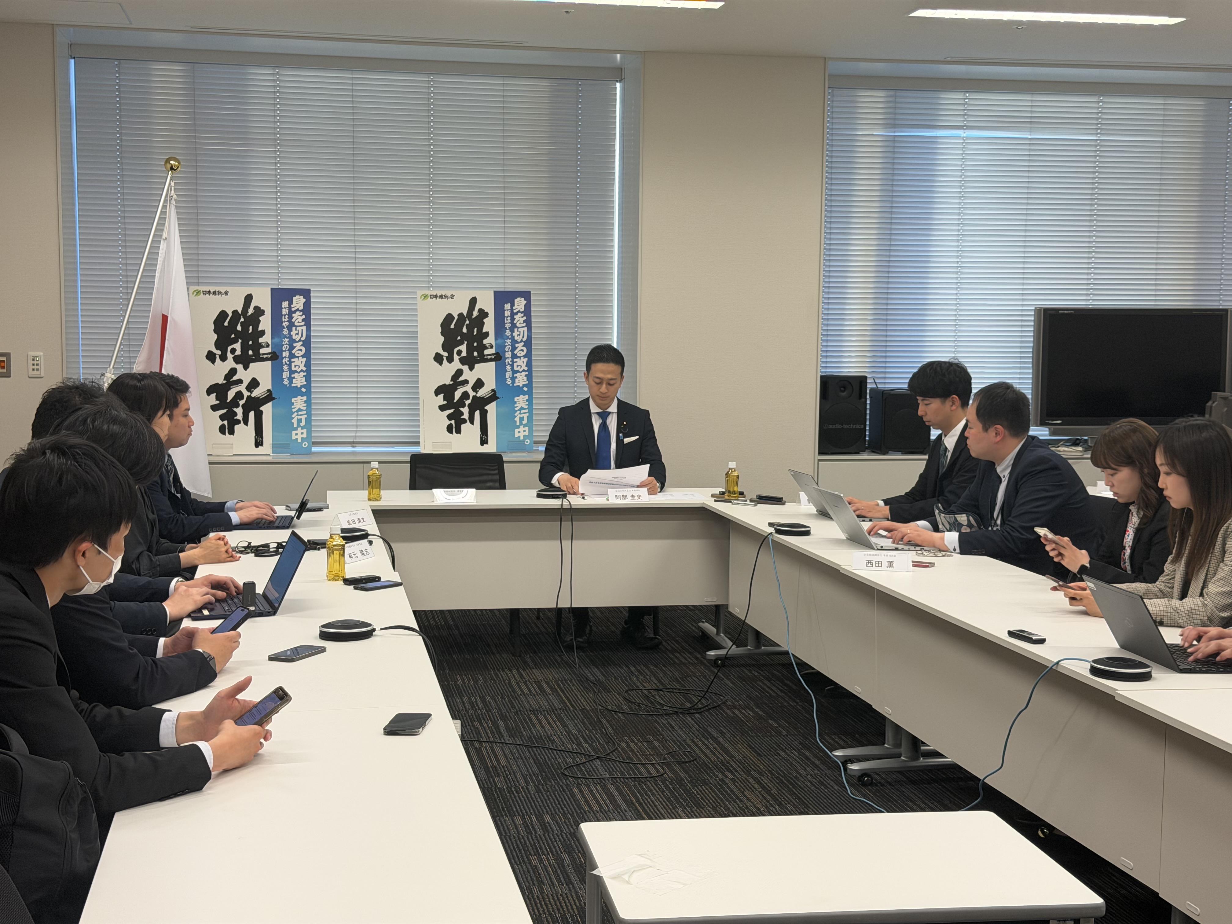 Activities活動情報 ニュース 安全保障調査会が行われました 2026.04.20 国会 シェアする ツイートする LINEで送る 本日4月20日、安全保障調査会が行われました。本日は、防衛戦略三文書の見直しに向けて、国家基本問題研究所の櫻井よしこ理事長、有元隆志企画委員、岩田清文元陸上幕僚長にお越しいただき、核抑止力強化のための国民的議論形成を促すご提言についてお話を伺いました。阿部圭史議員は終了後、「我々は核も含めて全て議論している。日本国民をどういうふうにしたら守ることができるかというのが最優先事項。それに関するタブーはないと思う」と語りました。 前の記事へ 一覧に戻る 活動情報 ニュース カテゴリ別 すべて 出演情報 動画 ギャラリー 選挙情報 国会活動 党声明・談話 身を切る改革 ダイバーシティ 年別 2026年 2025年 2024年 2023年 2022年 2021年 2020年 2019年 2018年 2017年 2016年 2015年 調査研究広報滞在費 ライブラリ